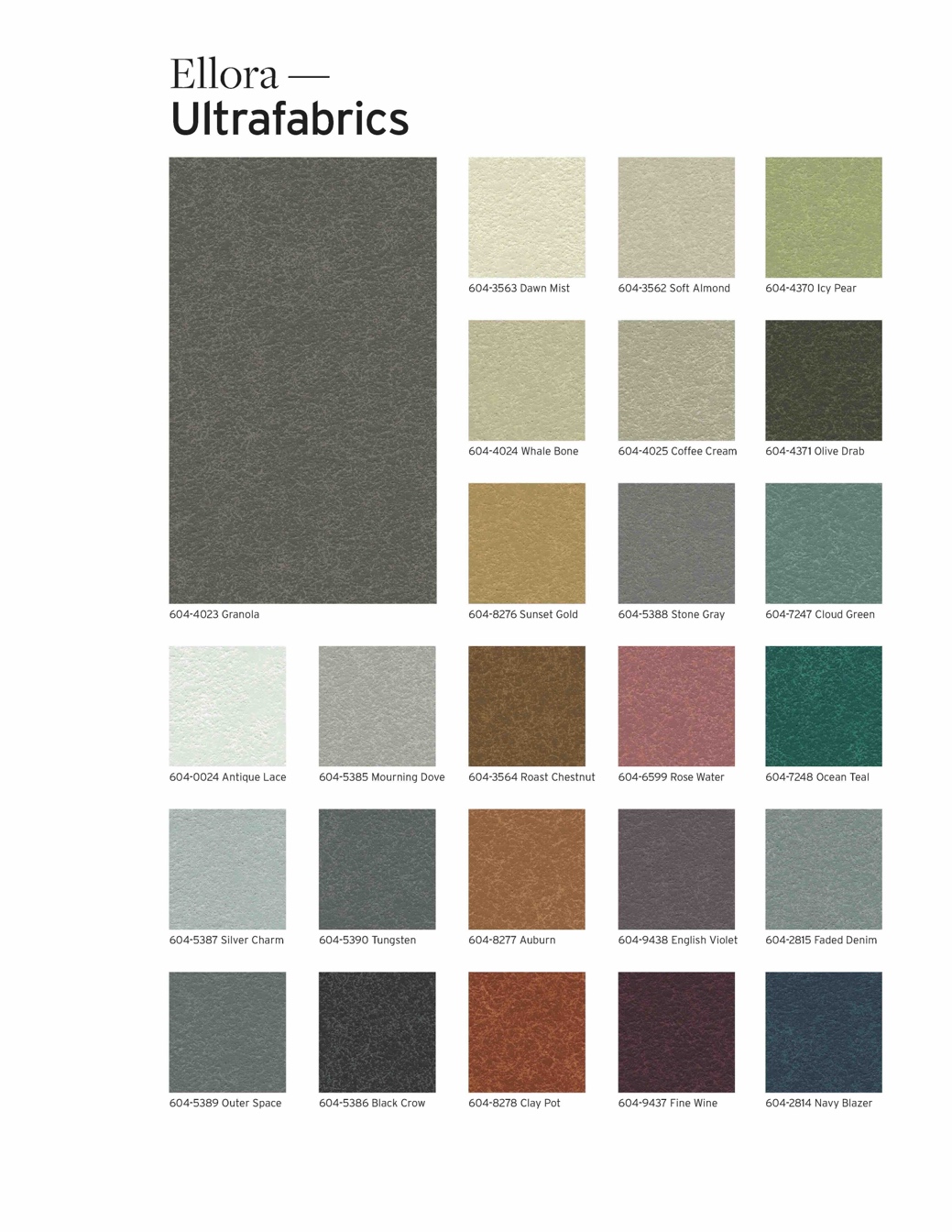 Im Rahmen des Engagements von Ultrafabrics für Nachhaltigkeit werden bei der Herstellung von Ellora recyceltes Polyester und verantwortungsvoll beschaffte Zellwolle verwendet. Jeder laufende Meter Ellora-Stoff verwendet etwa neun recycelte Plastikflaschen und trägt so zu einer Kreislaufwirtschaft bei, ohne Kompromisse bei Qualität oder Leistung einzugehen.